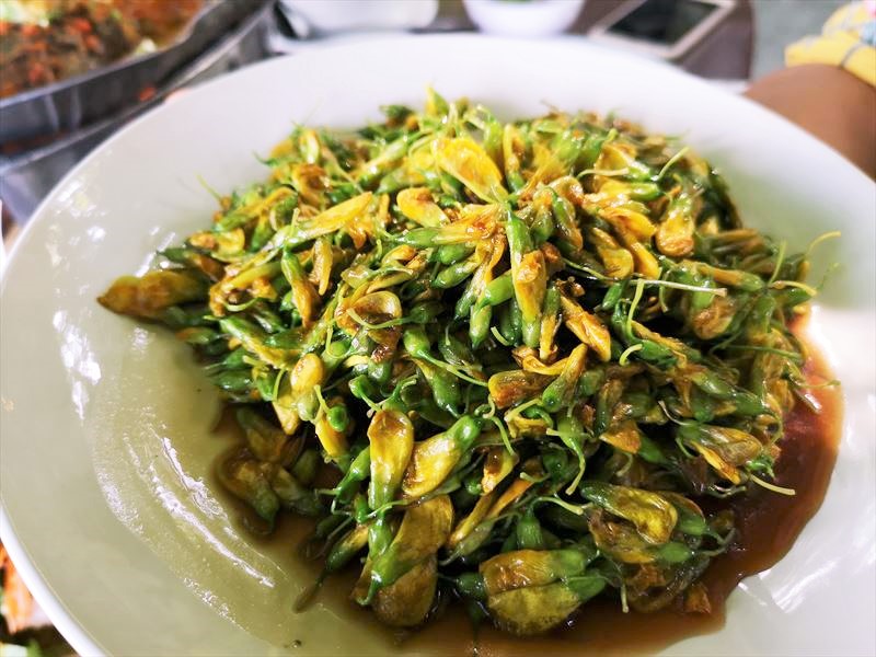 セスバニア料理をレストランで作ってもらいました